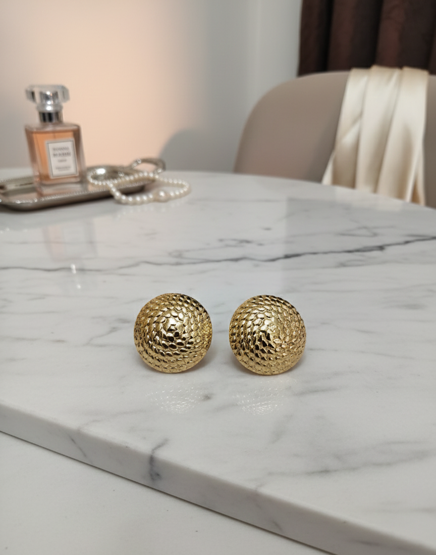 Gold Textured Dome Stud Earrings