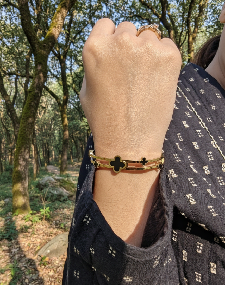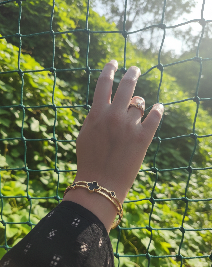Lucky Design: Features a classic four-leaf clover motif with striking black accents, symbolizing good luck and elegance.