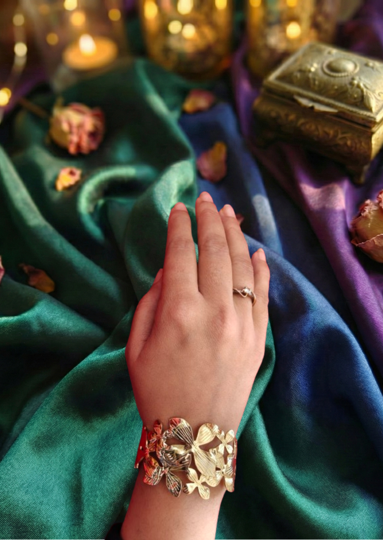 Botanical Sculpting: Features a romantic design of interlocking, large-scale blooms (resembling lilies or hibiscus) that wrap around the wrist.