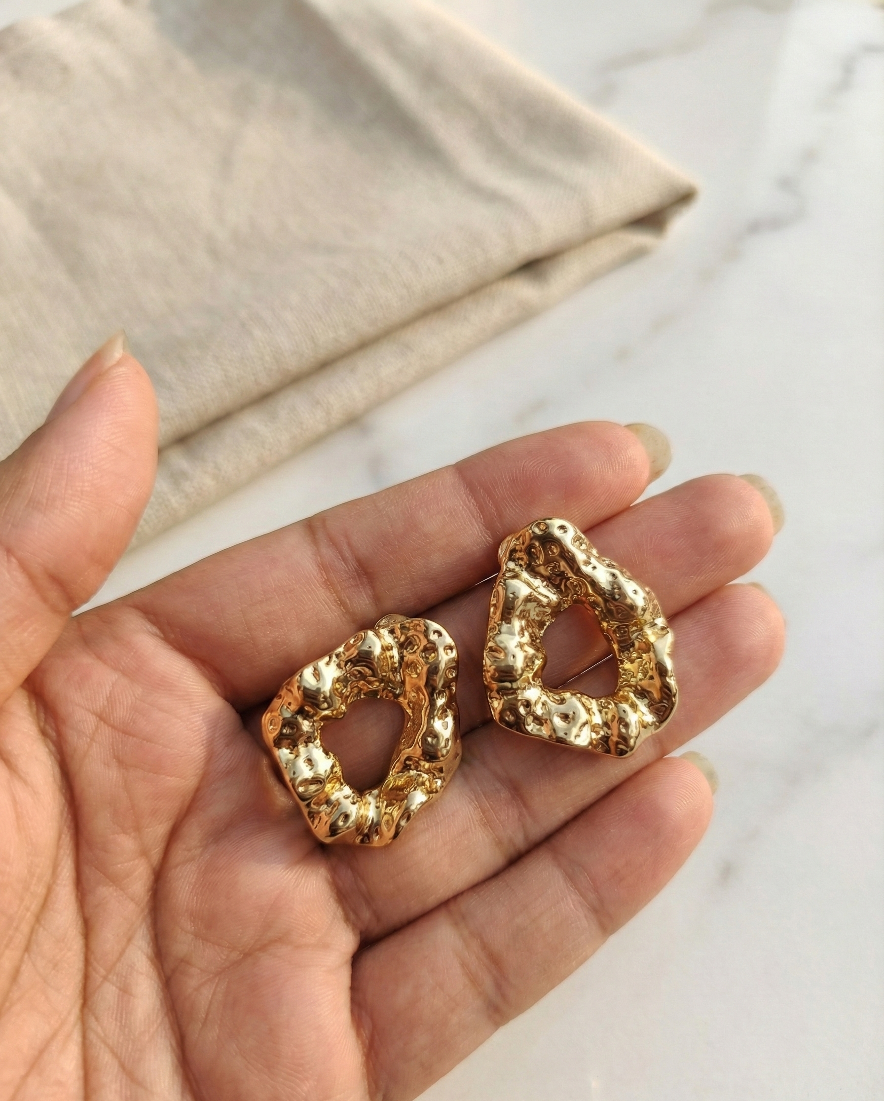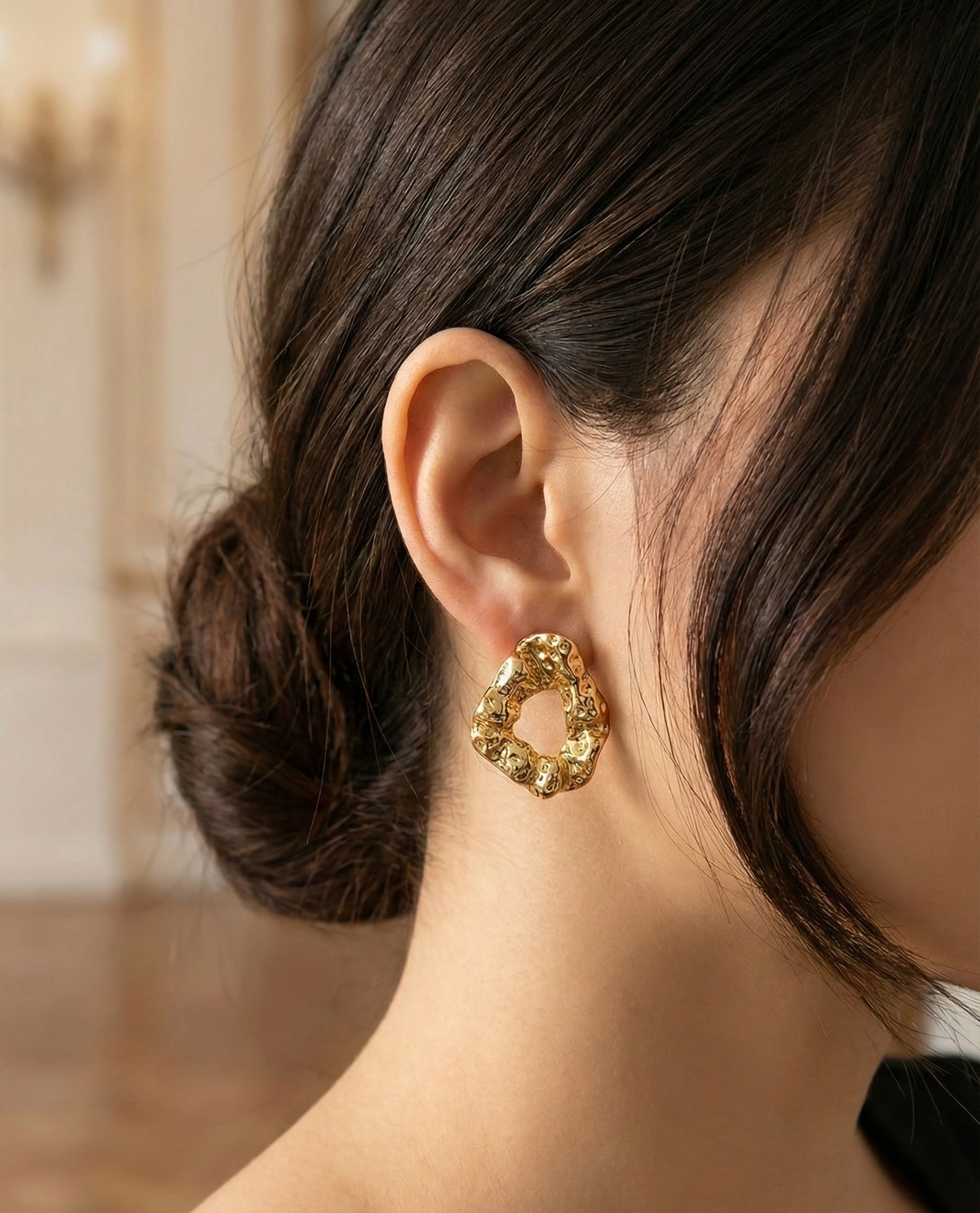 Artistic Versatility: A perfect balance of raw texture and polished shine, these earrings add an edgy, sophisticated touch to both casual knits and evening gowns.