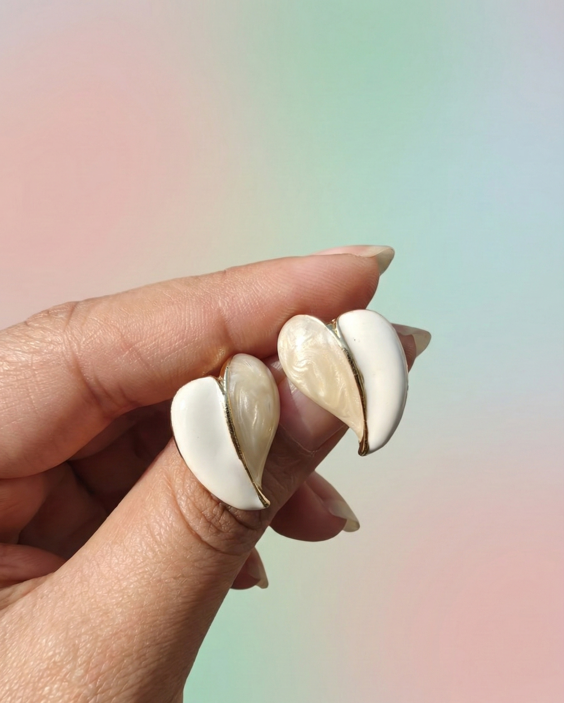 Dual-Texture Heart: Features a sophisticated heart silhouette divided into two distinct halves—one side smooth, opaque white and the other a shimmering pearlescent swirl-separated by a slender gold curve.