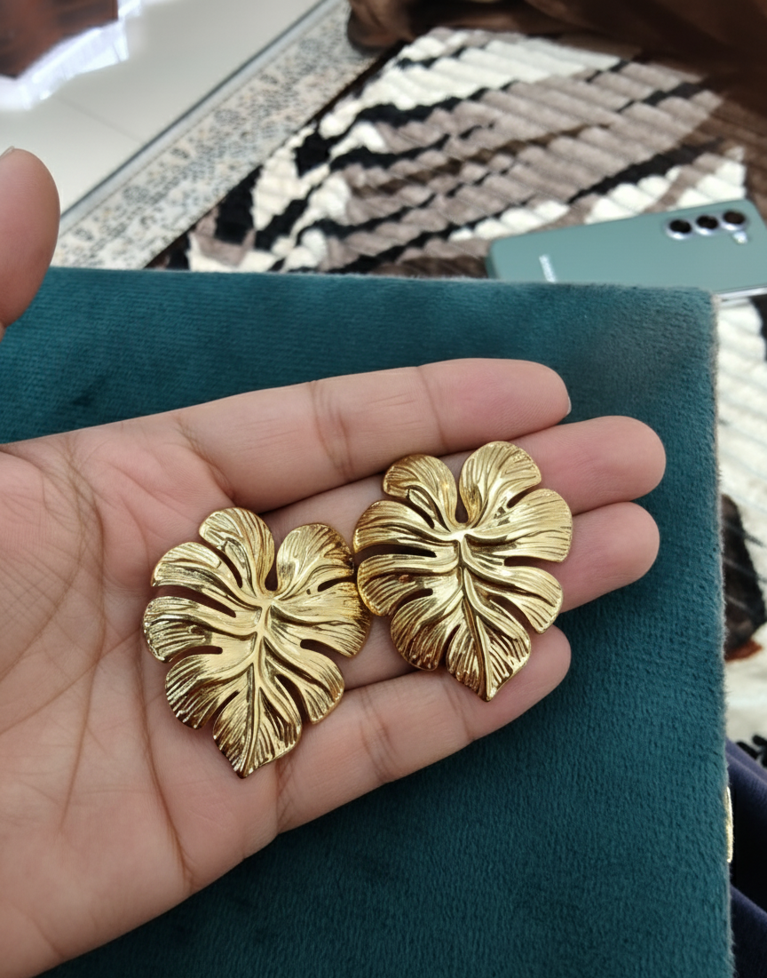 Botanical Silhouette: Features a beautifully sculpted tropical leaf design, capturing the organic beauty of nature in a sophisticated stud.