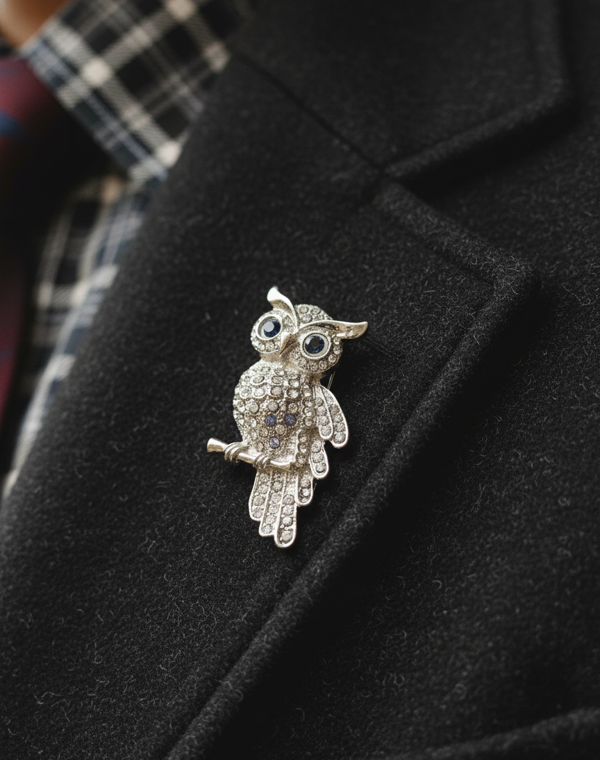 Add a touch of woodland mystery to your ensemble with our Vintage-style Owl Brooch. Meticulously crafted with a silver-tone finish, this stunning piece features a wise owl perched delicately on a branch.